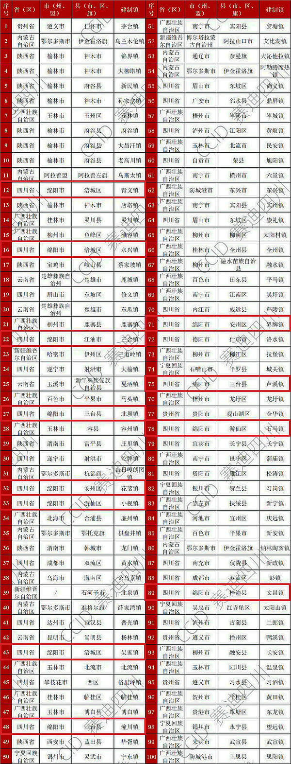 游仙、安州、江油、三臺、梓潼均有上榜鎮(zhèn)