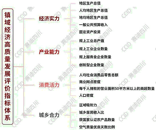 賽迪四川鎮(zhèn)域經(jīng)濟研究中心將2024鎮(zhèn)域經(jīng)濟高質(zhì)量發(fā)展評價指標(biāo)體系由2023年的“經(jīng)濟實力、發(fā)展水平、工業(yè)水平、消費能力”調(diào)整優(yōu)化為2024年的“經(jīng)濟實力、產(chǎn)業(yè)能力、消費活力、城鄉(xiāng)合力”四個方面。“2024鎮(zhèn)域經(jīng)濟500強暨中部100強、西部100強”研究評價指標(biāo)體系共包括4個一級指標(biāo)、17個二級指標(biāo),其中,二級指標(biāo)較2023年凈增加4個。