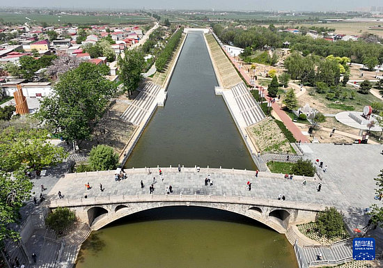空中俯瞰趙州橋(4月25日攝,無人機照片)。