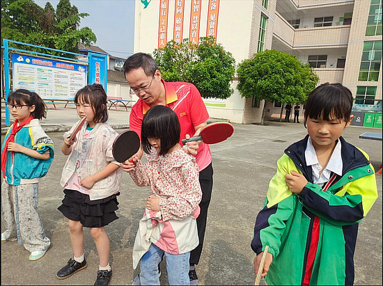 年5月9日,該校開展了“銀球飛旋 快樂(lè)童年”乒乓球特色工作活動(dòng)?;顒?dòng)中,該校黨支部書記、校長(zhǎng)彭真致歡迎詞。邀請(qǐng)了安州區(qū)業(yè)余體校黨支部書記、校長(zhǎng),國(guó)家級(jí)社會(huì)體育指導(dǎo)員,安州區(qū)乒乓球資深教練劉英,安州區(qū)乒乓球比賽團(tuán)體冠軍得主,安州區(qū)優(yōu)秀乒乓球運(yùn)動(dòng)員張義兵、賀煒、王翠香、邱弟軍,對(duì)全校師生進(jìn)行了一堂生動(dòng)而專業(yè)的乒乓球教學(xué)課。教練員們針對(duì)學(xué)校乒乓球教學(xué)需要,分別到各個(gè)班級(jí),重點(diǎn)講解了乒乓球運(yùn)動(dòng)的意義、乒乓球教學(xué)基礎(chǔ)以及乒乓球比賽規(guī)則,手把手教學(xué)生打球,指導(dǎo)學(xué)生基本動(dòng)作,和孩子們交流乒乓球運(yùn)動(dòng)的心理體驗(yàn),受到孩子們的熱烈歡迎。