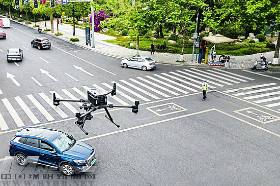 “前方黑色轎車請注意,你越線變道的違章行為已被記錄,請駕駛員遵守交通規(guī)則,文明出行!”5月11日下午,在九洲大道上,無人機正在按照設(shè)定路線進行空巡,地面上所有信息都被機身配置的攝像頭完全“捕捉”,并實時傳回后臺。