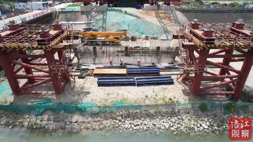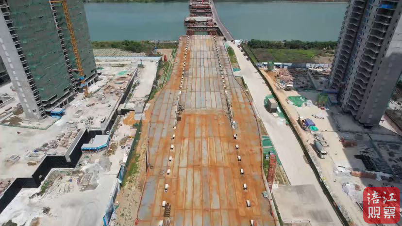 記者看到,在涪城區(qū)青義鎮(zhèn)青龍大道靠近涪江位置,大型跨河頂推鋼架已經(jīng)架設(shè)起來,頂推各項監(jiān)控設(shè)施已經(jīng)搭建。青石路涪江大橋項目負(fù)責(zé)人介紹,該橋為梁拱組合形式的鋼結(jié)構(gòu)橋,頂推施工采用不帶拱兩側(cè)非對稱頂推工藝,兩側(cè)頂推施工同步進(jìn)行。其中,涪城側(cè)鋼箱梁主梁長度255米,頂推距離316米,游仙側(cè)鋼箱梁主梁長度125米,頂推距離177米。跨江頂推距離達(dá)493米,頂推時間預(yù)計將在夏季完成。