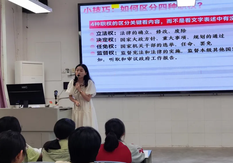 綿陽市實驗中學青年教師江語薇執(zhí)教初中道德與法治八下《國家權力機關》新課教學。課堂上,江老師將“立足核心素養(yǎng)、聚焦課堂實踐”這一理念貫穿始終。她以2024年“兩會”引入新課,通過“議題式教學”展開課堂。通過對時政材料——2024年全國人民代表大會的分析,讓學生明確權力機關的性質(zhì)、構成、地位及職權。整個教學過程充分發(fā)揮了教師的主導作用,通過豐富的材料,生動的視頻,調(diào)動了學生的主動性和積極性。巧妙的設計得到在場聽課老師的一致好評。