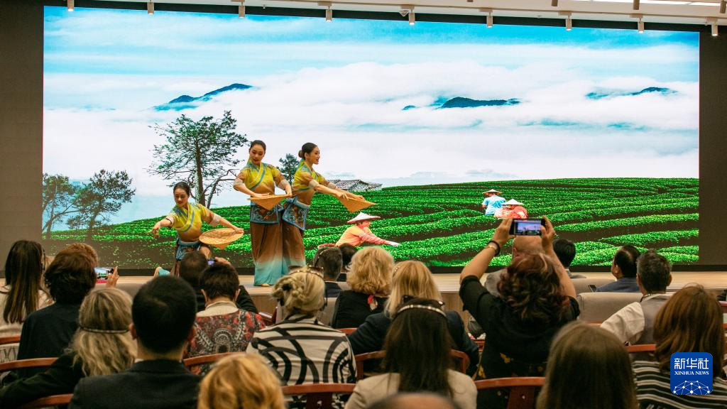 21日,中國駐美國大使館與湖北省文化和旅游廳、華盛頓美國華人博物館合作舉辦2024年度“茶和天下·雅集”活動(dòng)。湖北省代表團(tuán)與美國當(dāng)?shù)夭杷噹熀献鳎故玖硕魇┯衤?、長盛川青磚茶和涇渭茯茶等多種茶葉的制作技藝,以及具代表性的茶葉產(chǎn)品、茶器和制茶工具,并現(xiàn)場表演茶藝。嘉賓們紛紛表示,活動(dòng)讓他們充分領(lǐng)略到了中國茶文化的親和力和凝聚力。