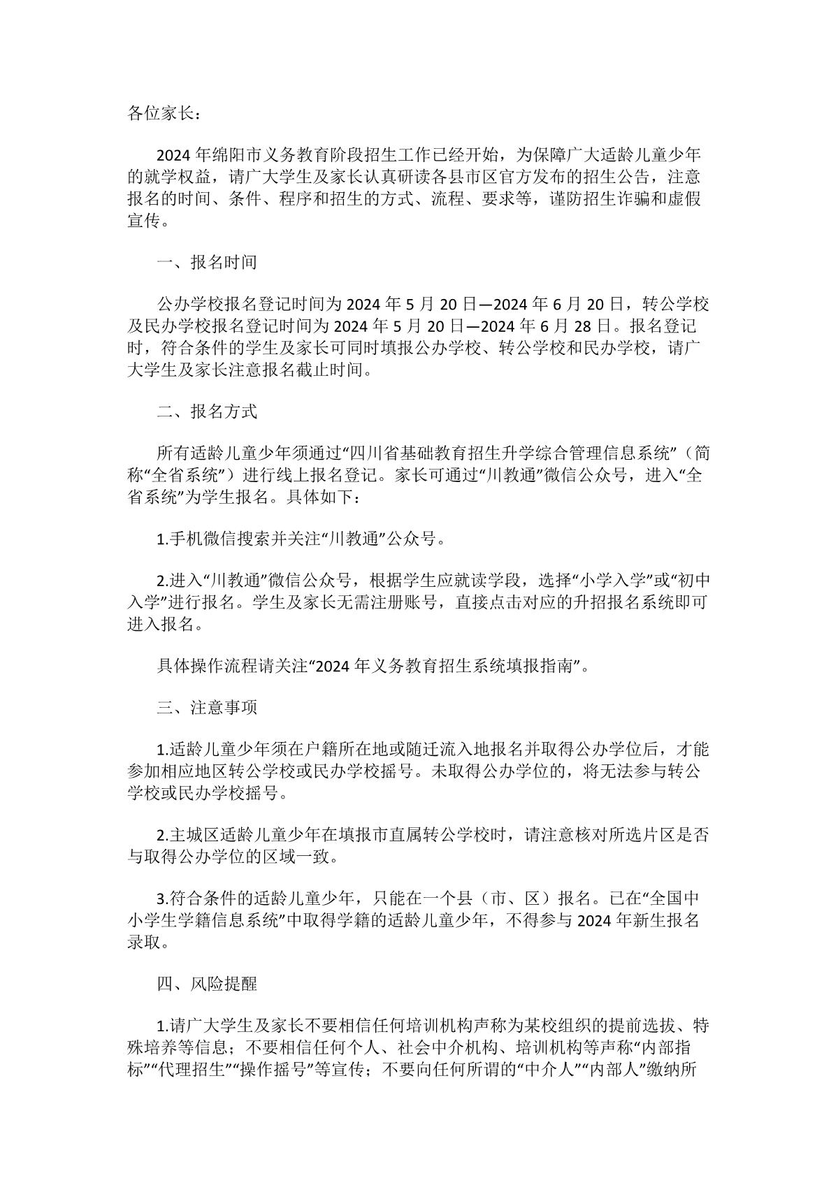 2024年綿陽市義務(wù)教育階段招生報名溫馨提示