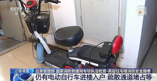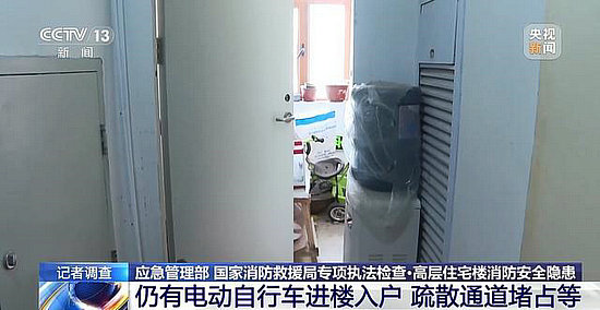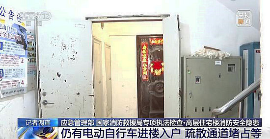 在對吉林長春、遼源等地一些高層居民住宅樓的檢查中,聯(lián)合執(zhí)法小分隊發(fā)現(xiàn)了不少問題,像電動自行車充電停放、常閉式防火門敞開、疏散通道被堵占等問題依然存在。