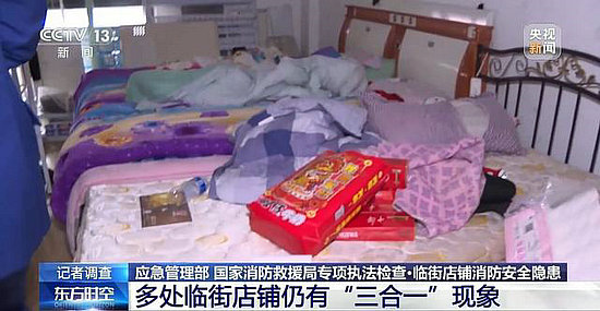 除了高層居民住宅小區(qū)存在的安全隱患,聯(lián)合執(zhí)法小分隊在檢查中還發(fā)現(xiàn)一些臨街店鋪,存在集經(jīng)營、倉儲和人員住宿于同一建筑內(nèi)的“三合一”現(xiàn)象。而按照規(guī)定,經(jīng)營場所不能跟居住場所設(shè)置在同一建筑內(nèi)。