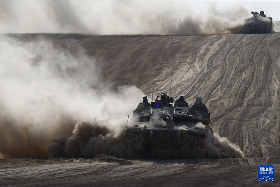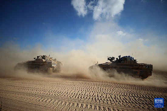 這是5月29日在以色列與加沙邊境以方一側(cè)拍攝的以軍部隊(duì)。新華社發(fā)(賈馬爾·阿瓦德攝)