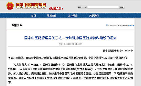 國家中醫(yī)藥管理局官網截圖