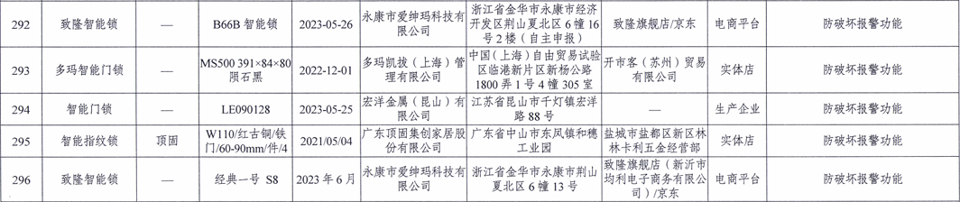 “頂固”等5批次智能門鎖產品抽檢不合格 來源:江蘇省市場監(jiān)督管理局官網截圖