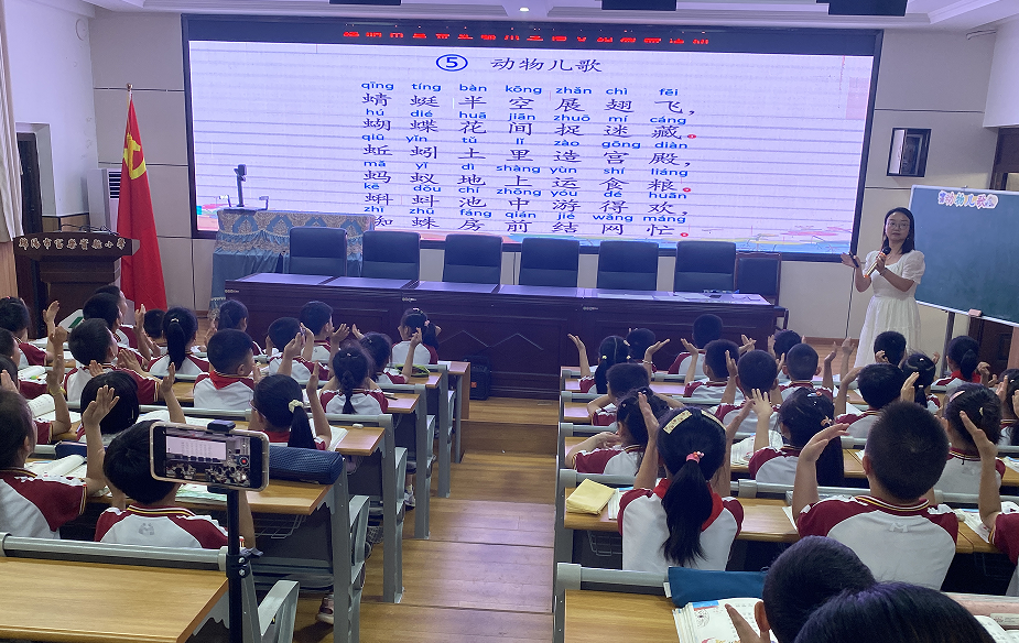 王丹老師執(zhí)教《動物兒歌》一課。整堂課以任務(wù)為驅(qū)動,環(huán)節(jié)清晰:創(chuàng)設(shè)情境,讓學(xué)生明確學(xué)習(xí)任務(wù)。采用多種朗讀形式,讀準(zhǔn)兒歌。借助形聲字規(guī)律,識記生字。多種方法,趣味識字。借助句式,創(chuàng)編兒歌。王丹老師的課有方法,有重點(diǎn)、有成效,是一堂扎扎實(shí)實(shí)的識字寫字課。