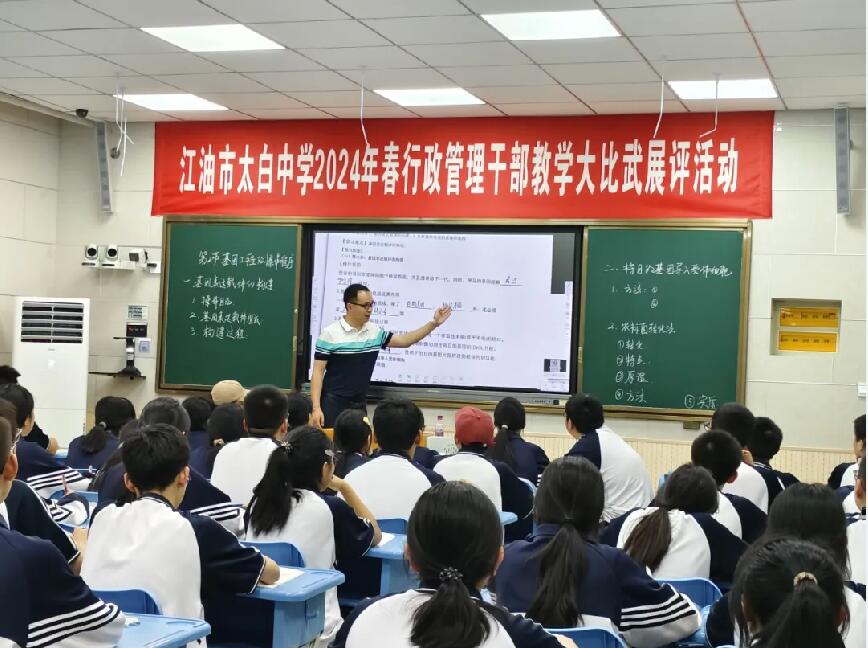 為了深入推進(jìn)學(xué)校“立足問題,基于情境,深耕課堂的‘四主三段七步’”課堂教學(xué)模式改革,落實學(xué)校“大比武”活動,4月至6月,江油市太白中學(xué)舉行了以“實效課堂,干部示范”為主題的2024年出春行政管理干部教學(xué)“大比武”展評活動。