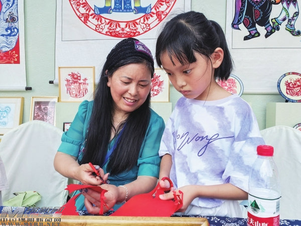“注意剪刀力度的把握,沿著折疊的線條下刀……”在非遺互動體驗區(qū),王梓涵小朋友在三臺剪紙代表性傳承人蘭小奇的指導下,幾分鐘就剪出了一只栩栩如生的蝴蝶。王梓涵曾經(jīng)跟隨外婆學習過剪紙,以前只會剪“囍”,通過這次活動,她不僅學會了剪蝴蝶,還學會了剪葫蘆,“很有趣,有機會還要繼續(xù)學習剪紙。”