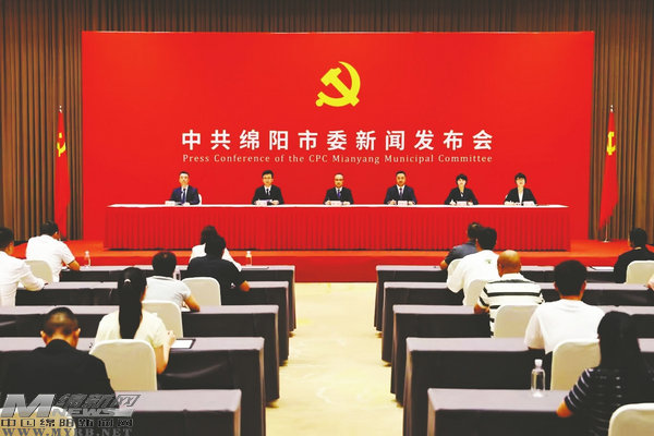 6月13日,中共綿陽市委新聞發(fā)布會現(xiàn)場。(記者陳冬冬攝)