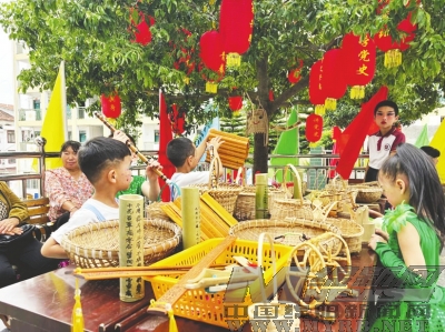 孩子們學(xué)習(xí)竹編技藝