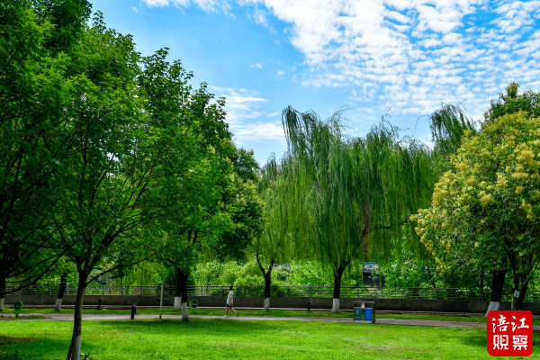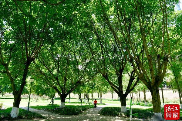 6月17日,記者在綿陽(yáng)城區(qū)的涪濱路、青年廣場(chǎng)、五一廣場(chǎng)河堤等處看到,松樹(shù)、樟樹(shù)、欒樹(shù)等各種樹(shù)木,樹(shù)冠茂盛,濃蔭蔽日,猶如一把巨大的“遮陽(yáng)傘”,為市民遮住了熾熱的陽(yáng)光。