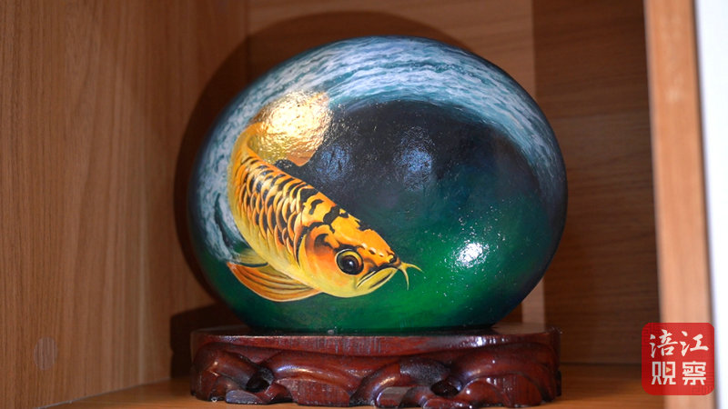 張霞自幼愛好繪畫。6年前一次郊游,她在河灘拾得幾枚形態(tài)好看的石頭回家。閑暇中,張霞把玩這些石頭,靈感油然而生:“何不在石頭上繪畫呢?”