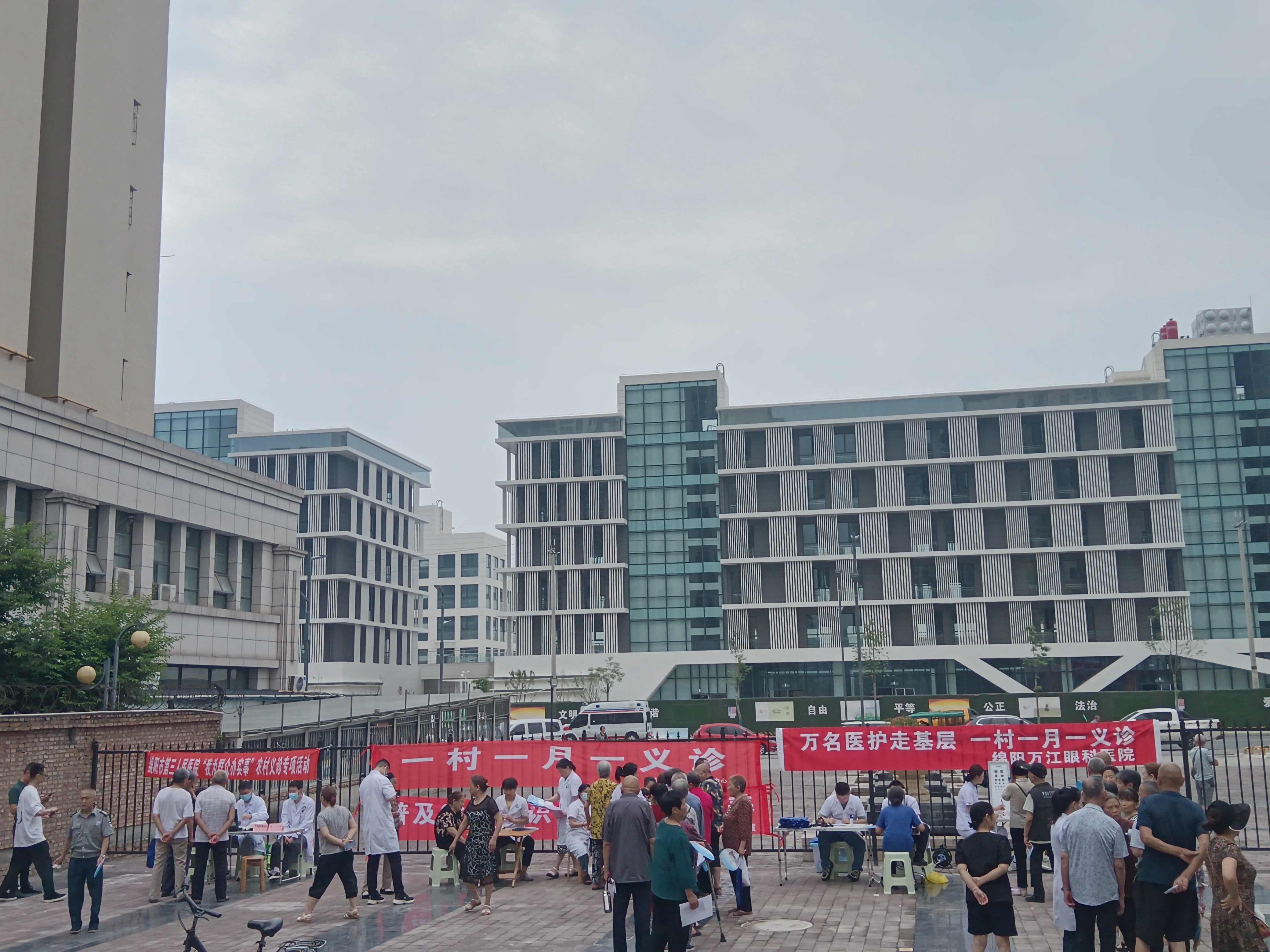 6月19日上午,由綿陽市第三人民醫(yī)院、綿陽市萬江眼科醫(yī)院及塘汛街道社區(qū)衛(wèi)生服務(wù)中心組成12人義診小隊,在塘汛街道城南壹號小區(qū)開展2024年第三次“一村一月一義診”活動?;顒蝇F(xiàn)場人頭攢動,百余名村民對醫(yī)療專家的到來表達出十分的熱情。義診中,專家與就診村民面對面交流,為村民測量血壓、測量血糖、測試視力、篩查呼吸系統(tǒng)疾病、提供中醫(yī)問診、普及健康素養(yǎng)知識,檢查各種常見病、慢性病,針對不同的疾病運用通俗的語言為患者耐心解答,并給予個性化的健康指導(dǎo)及制定適宜的治療方案,同時綿陽市第三人民醫(yī)院甲狀腺頭頸頜面外科的專家老師現(xiàn)場為群眾進行了甲狀腺疾患篩查,并答疑解惑。本次義診,共為村民朋友測量血壓血糖100余人次,發(fā)放健康教育宣傳資料400余份,義診活動得到現(xiàn)場村民的紛紛夸贊。
