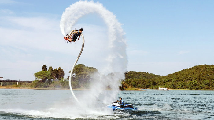 除了好運碼頭水上游樂項目,在親水灣還有水上自行車、水上碰碰船、皮劃艇等游樂項目,今年夏天,仙海推出了驚險刺激的水上飛人、動力板等形式多樣的水上運動,讓你一邊體驗極速漂移的刺激,一邊感受水花四濺的樂趣,盡情釋放心中的激情。特色鮮明的水上娛樂項目以及安全可靠的保障措施,讓仙海成為炎炎夏日消暑納涼的好去處。