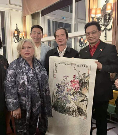 著名畫家唐新江向電影節(jié)組委會(huì)贈(zèng)送了國(guó)畫《富貴平安圖》,作品以中法兩國(guó)國(guó)花牡丹、鳶尾花為主,寓意中法友誼如花常艷,東西方文明相親相融。