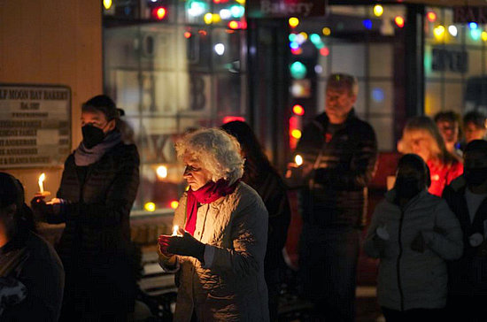 2023年1月31日,在美國加利福尼亞州半月灣市,人們手持蠟燭哀悼槍擊事件遇難者。新華社記者吳曉凌攝