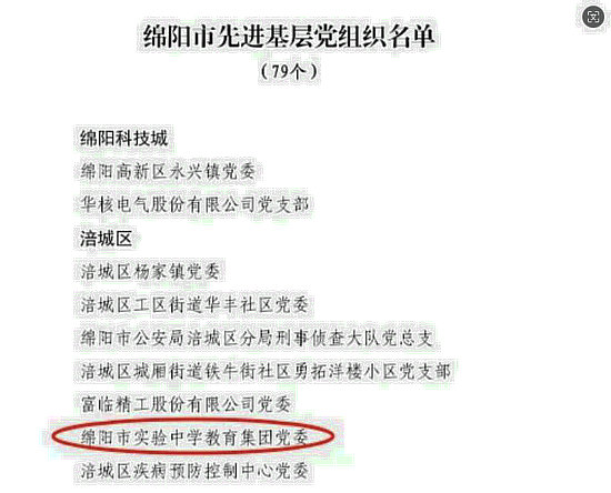 綿陽(yáng)新聞網(wǎng)訊 近日,中共綿陽(yáng)市委公開了綿陽(yáng)市優(yōu)秀共產(chǎn)黨員、優(yōu)秀黨務(wù)工作者、先進(jìn)基層黨組織名單,綿陽(yáng)市實(shí)驗(yàn)中學(xué)教育集團(tuán)黨委榮獲“綿陽(yáng)市先進(jìn)基層黨組織”稱號(hào)。