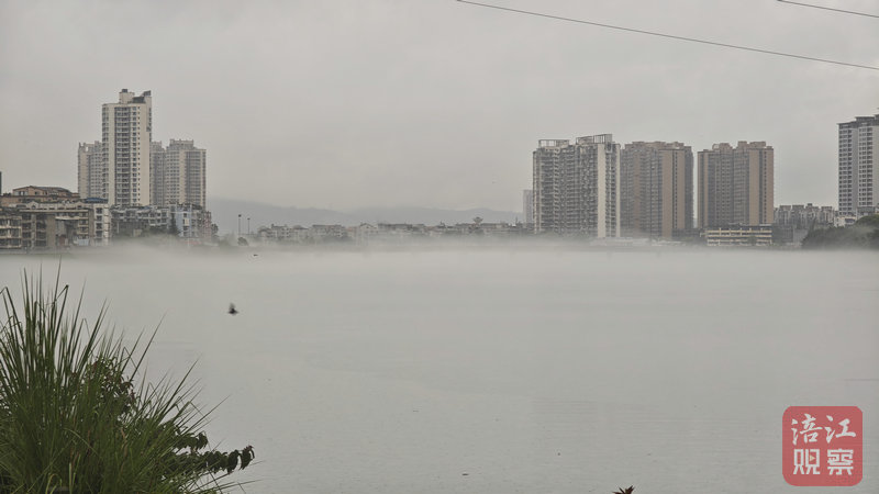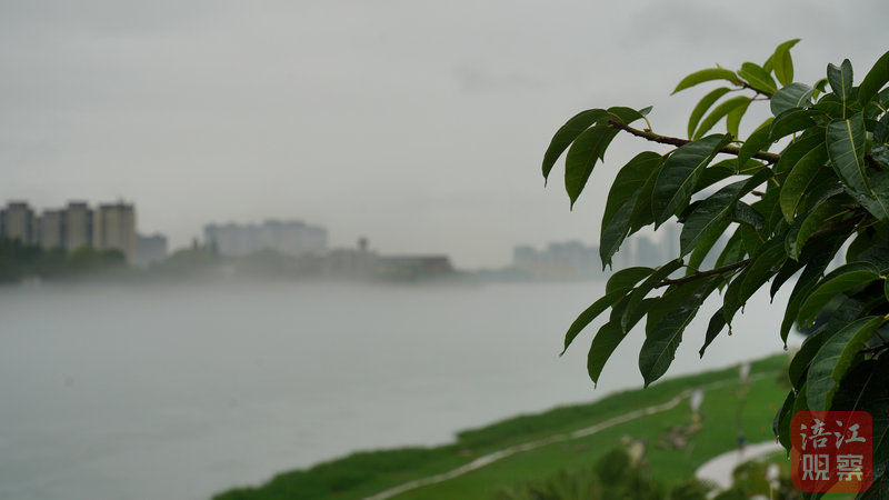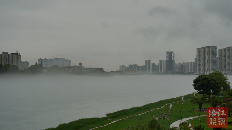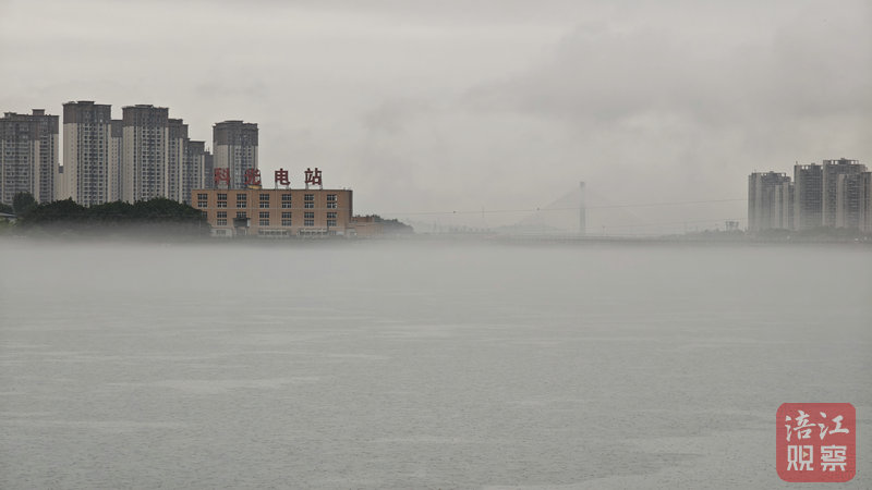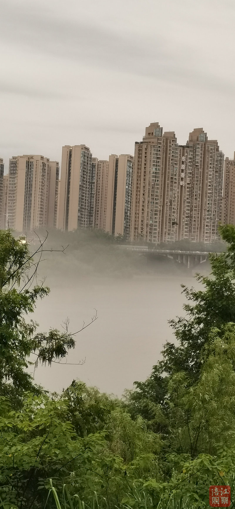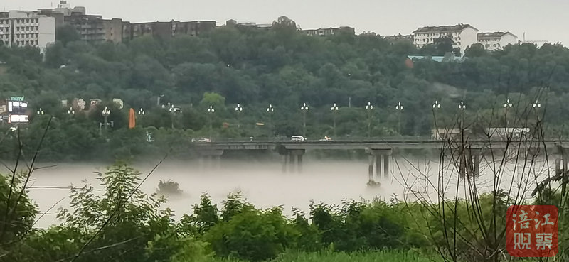 7月8日傍晚時(shí)分,雨水暫歇,在綿陽涪江河面上,霧靄繚繞,兩岸的高樓、橋梁在飄渺的氤氳里若隱若現(xiàn),就像浮在空中一般,宛如仙境。