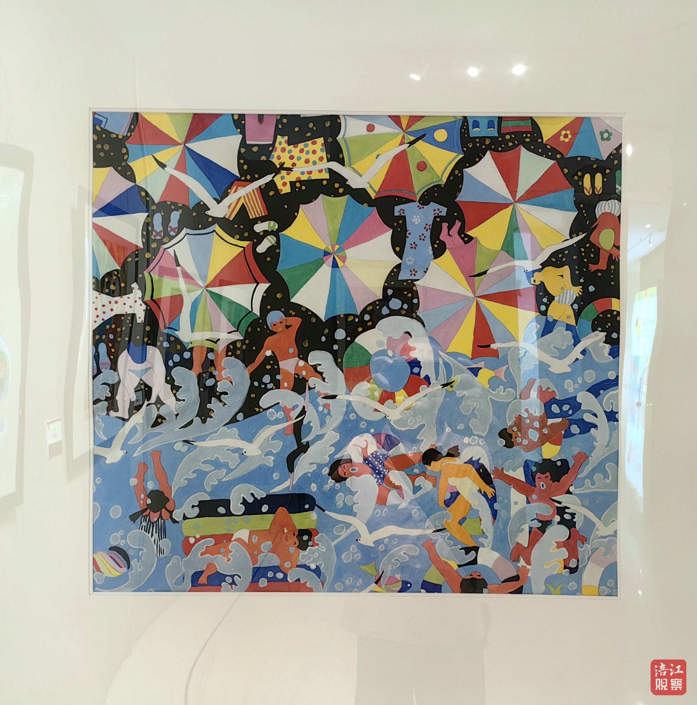 展覽的作品內(nèi)容豐富、構(gòu)圖飽滿、色彩艷麗,風(fēng)格自然活潑、浪漫稚拙,表達(dá)出人們追求幸福美好生活的樸實(shí)情感。