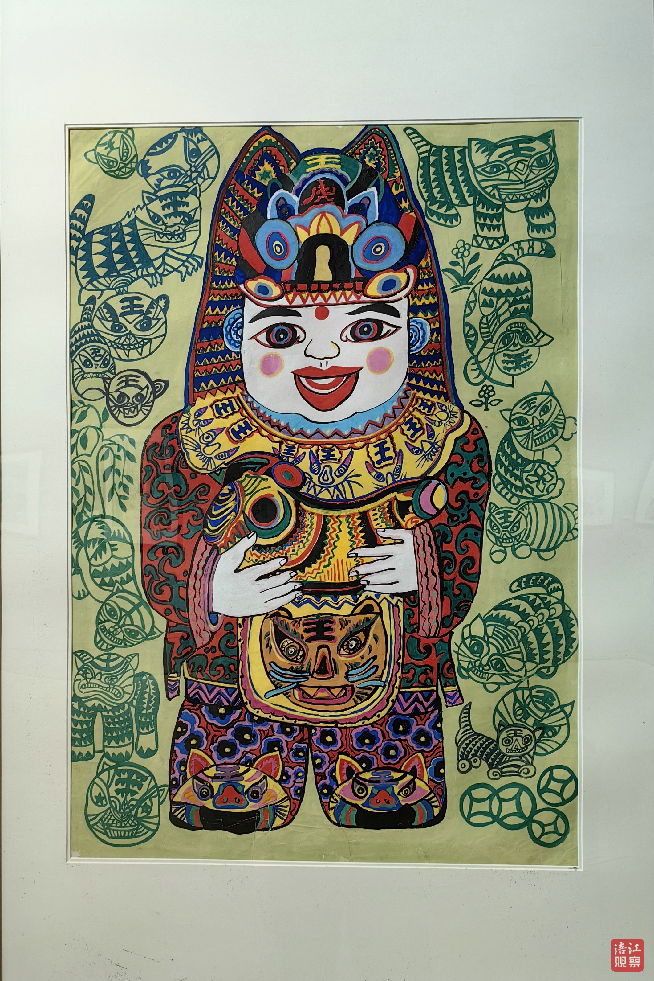 山東省日照市是中國(guó)農(nóng)民畫的最早發(fā)源地之一,在20世紀(jì)70年代后,從形式構(gòu)成、藝術(shù)審美、表達(dá)內(nèi)容等方面逐步形成了獨(dú)立風(fēng)格。作品以勾線平涂為主的表現(xiàn)手法,對(duì)比強(qiáng)烈的絢麗色彩、夸張的造型,甚至融入了西方的抽象元素等,具有獨(dú)特的裝飾美與形式美。