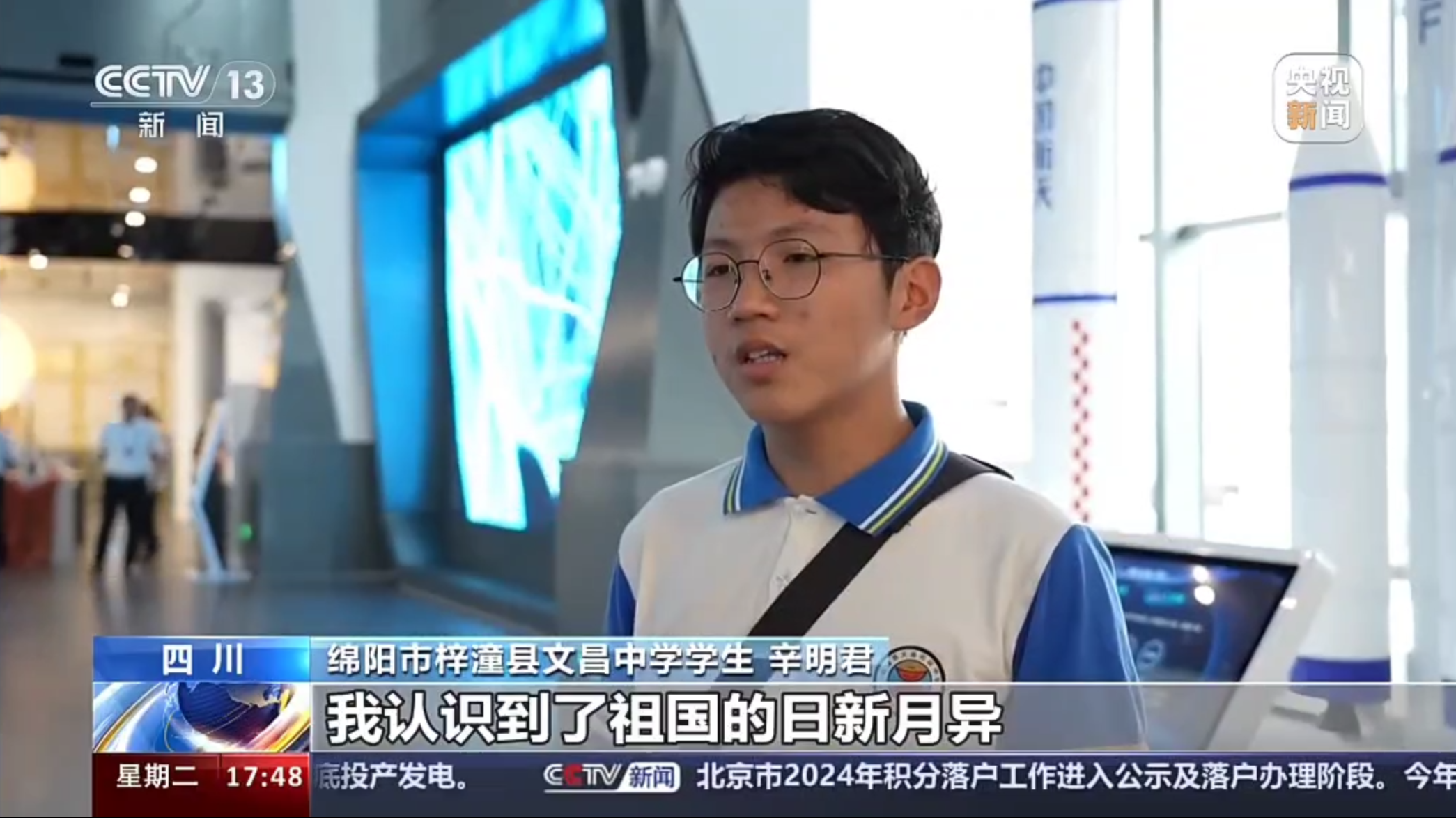 7月16日,央視CCTV13《新聞直播間》關(guān)注綿陽,聚焦大批青少年暑假走進綿陽梓潼航天科技館,體驗航天科技的魅力。全文報道如下:
