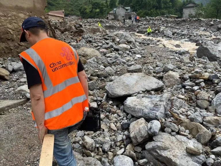 面對(duì)道路中斷、車輛無(wú)法通行的情況,應(yīng)急搶險(xiǎn)人員通過(guò)“手提、肩扛、人抬”的方式攜帶光纜、基站、發(fā)電機(jī)等設(shè)備,踏著遍地落石與泥沙徒步深入災(zāi)區(qū)開(kāi)展保障。21日10時(shí)許,中國(guó)聯(lián)通伴隨搶險(xiǎn)隊(duì)伍在新華村五組開(kāi)通便攜式衛(wèi)星設(shè)備;11時(shí)30分許,在新合村開(kāi)通便攜式衛(wèi)星設(shè)備。