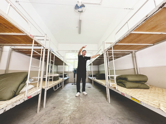 陳家壩中學(xué)安置點(diǎn),龍灣村村民母志明正在操場(chǎng)上幫安置點(diǎn)群眾曬被子。一周前,他收到橙色預(yù)警短信沒(méi)多久,村干部便派車把他和鄰居們接了過(guò)來(lái)。他領(lǐng)著記者參觀臨時(shí)家園。一樓門口是用餐區(qū),三個(gè)村最高峰轉(zhuǎn)來(lái)70余人,當(dāng)?shù)卣峁┟酌嬗腿猓齻€(gè)村輪流派出廚師烹飪。角落里擺放著5臺(tái)動(dòng)感單車供群眾健身。二樓住宿男女分區(qū),配備了電扇、蚊香、消防設(shè)施等。安置點(diǎn)還配有電腦,通過(guò)攝像頭可實(shí)時(shí)查看村里隱患點(diǎn)的最新情況。7月26日,隨著地災(zāi)風(fēng)險(xiǎn)預(yù)警解除,陳家壩中學(xué)安置點(diǎn)的村民也陸續(xù)返回了家園。