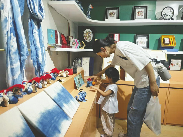 展臺(tái)內(nèi)的各種文創(chuàng)產(chǎn)品讓人應(yīng)接不暇,剪紙、蜀繡、董氏扎染等非遺產(chǎn)品,種類多達(dá)幾十種。