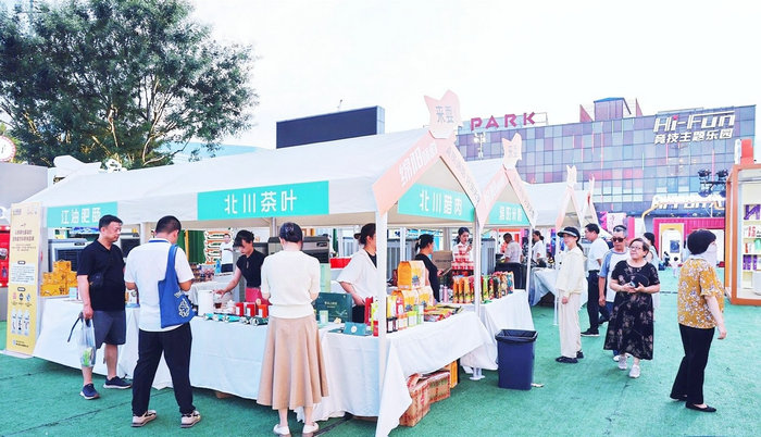 在區(qū)域特色集裝箱區(qū),三臺(tái)、鹽亭、平武、梓潼、游仙、安州充分融入地域特色,展示各地產(chǎn)業(yè)、文化發(fā)展情況,還有老字號(hào)、地標(biāo)等特色農(nóng)業(yè)和文創(chuàng)產(chǎn)品。