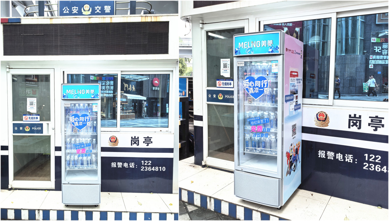 “愛(ài)心冰柜”里裝滿(mǎn)了免費(fèi)的礦泉水、牛奶等飲品,供環(huán)衛(wèi)工人、快遞員、外賣(mài)小哥、交警等戶(hù)外工作者按需自取。