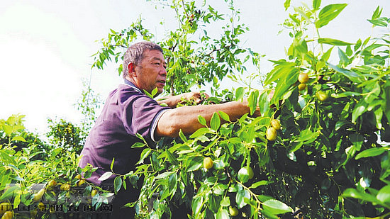 村民忙著采收成熟的米棗