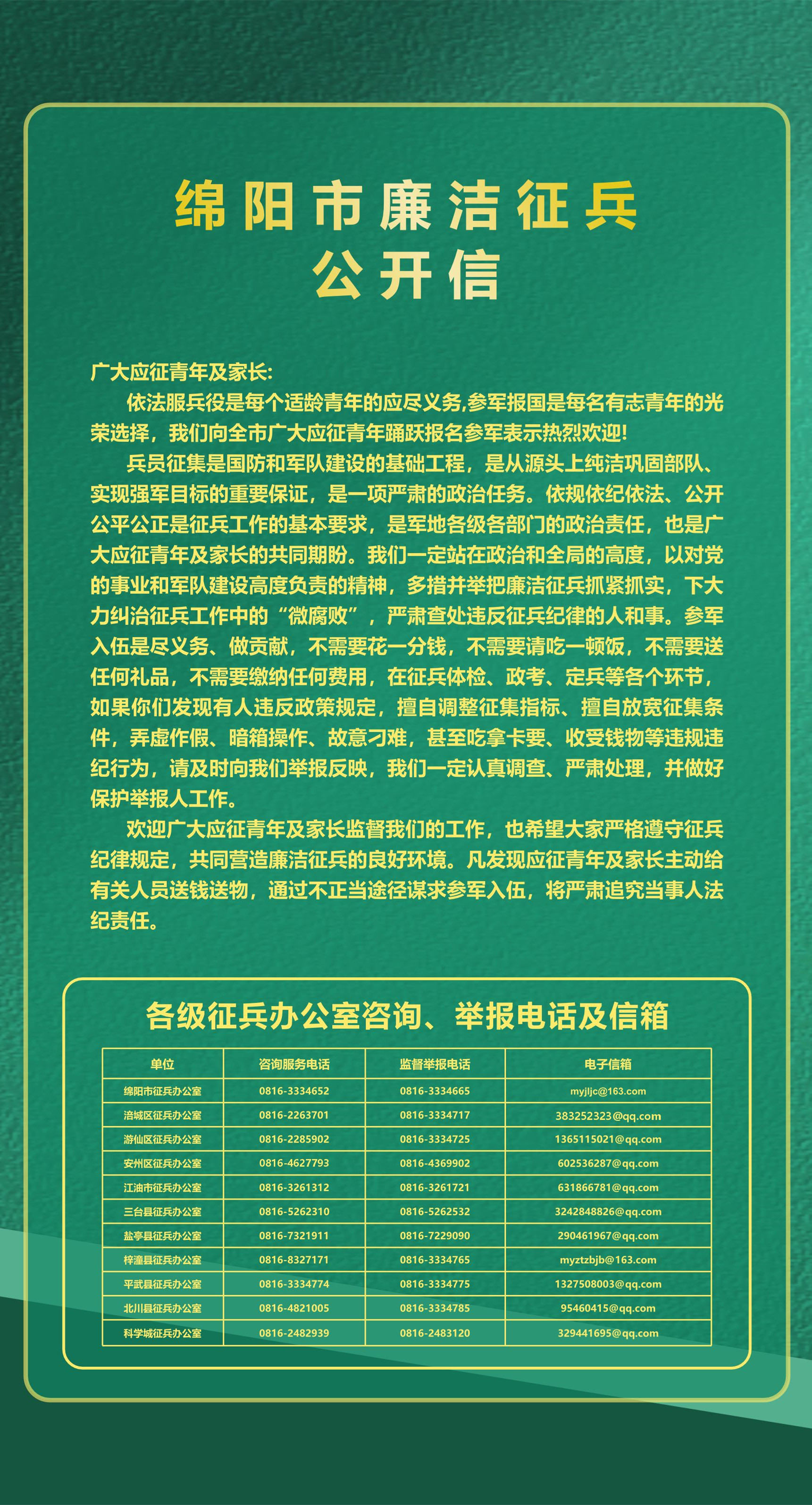 綿陽市廉潔征兵公開信
