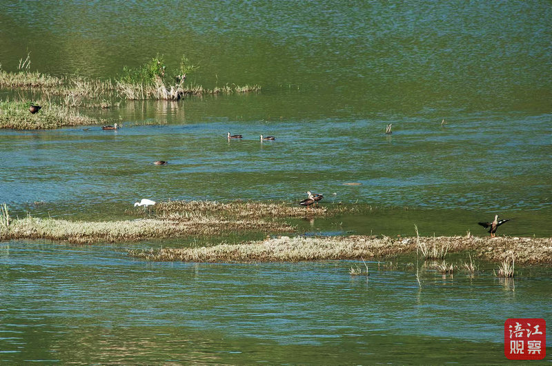 在這里,白鷺、斑嘴鴨、赤麻鴨成為了最靈動(dòng)的風(fēng)景線。它們?cè)诮蠝\水處悠然自得,或低頭覓食,或展翅高飛,或悠閑地在水里游來游去,像是大自然精心編排的舞蹈,令人賞心悅目。