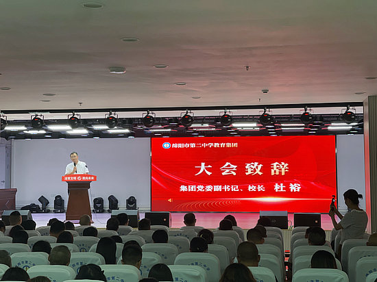 隨后,集團黨委副書記、校長杜裕致辭,向全體教職工致以崇高的敬意和誠摯的祝福。杜裕號召全體教師弘揚教育家精神,勇于擔當、敢于創(chuàng)新、追求卓越,共同為二中學子的明天貢獻自己的力量!