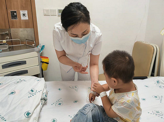?。乖拢保叭眨拭C省婦幼保健院(甘肅省中心醫(yī)院)護(hù)理人員為一名2歲脈管畸形兒童靜脈輸液。新華社記者梁軍 攝