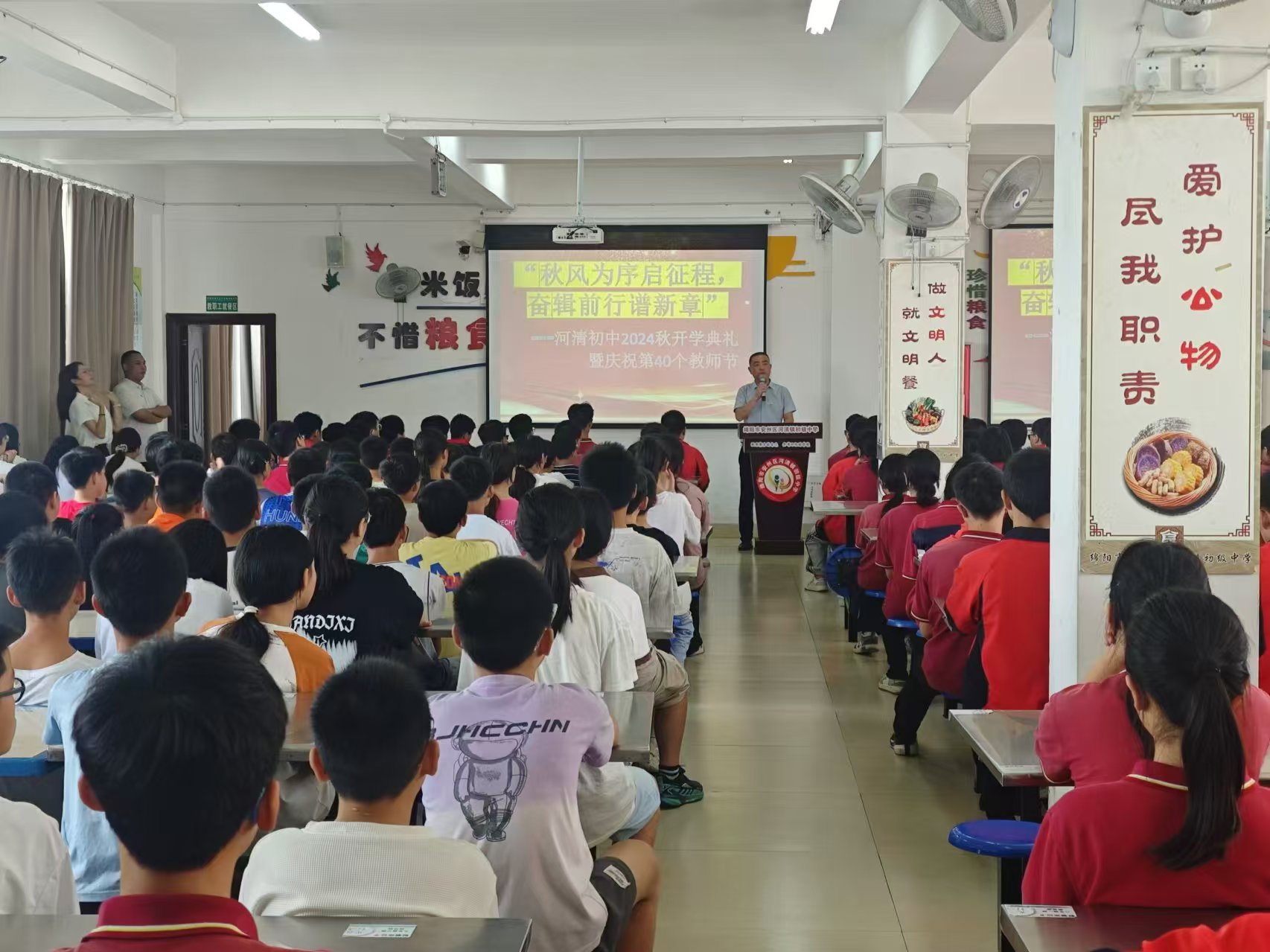 9月10日上午,安州區(qū)河清初中隆重舉行了以“秋風(fēng)為序啟征程,奮楫前行譜新章”為主題的2024年秋開學(xué)典禮暨慶祝第40個(gè)教師節(jié)活動(dòng)。全校260余名師生參與了開學(xué)典禮,活動(dòng)旨在營(yíng)造濃厚的開學(xué)氛圍,激勵(lì)全校師生以飽滿的熱情和昂揚(yáng)的斗志投入到新學(xué)期的學(xué)習(xí)與工作中。