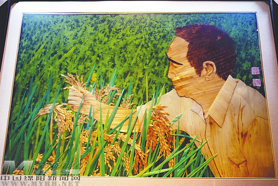 在龍怡珍創(chuàng)作的眾多麥稈烙畫人物中,《一粒米的史詩》運(yùn)用國畫元素進(jìn)行烙繪,突出人物細(xì)微的面部表情及綠色水稻的靈動線條,講述雜交水稻之父袁隆平的辛勤耕耘之路。這幅作品于今年8月初入選了沿黃九省區(qū)民間工藝美術(shù)精品展。