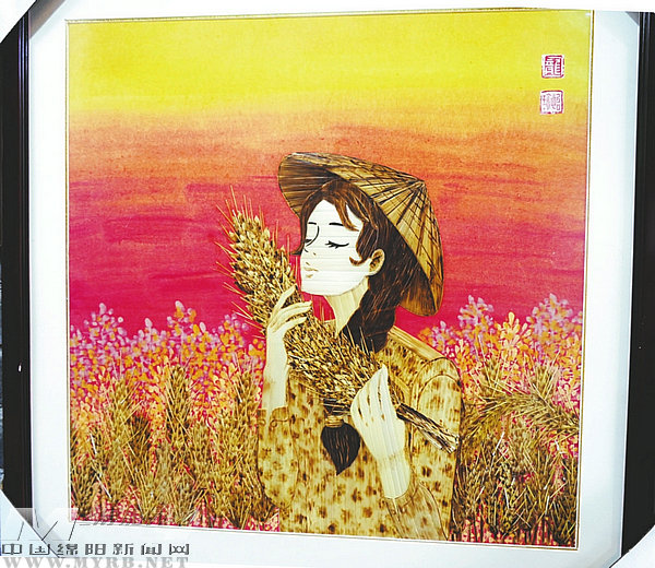 那是2005年的春天,龍怡珍隨丈夫走親戚。在親戚家的墻上,龍怡珍取下一頂有麥稈拼接花朵裝飾的草帽向他問個不停。此時,她還是三臺棉紡廠的一名幼兒園老師。此后,龍怡珍開始跟隨親戚學(xué)習(xí)麥稈畫的簡單制作方法,偶爾教幼兒園的小朋友制作手工。