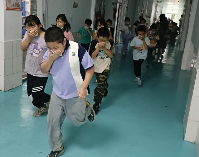 隨著急促的警報聲響起,演練正式拉開序幕。各班班主任立即指揮學(xué)生紛紛貓著腰,用濕毛巾或濕巾捂住口鼻,保持鎮(zhèn)定,按照預(yù)設(shè)的逃生路線,有序從教室前后門撤離。學(xué)生們在老師們的引導(dǎo)下,步伐穩(wěn)健,秩序井然,展現(xiàn)出良好的應(yīng)急疏散能力。短短的58秒,全校師生全部安全撤離到指定的安全區(qū)域。