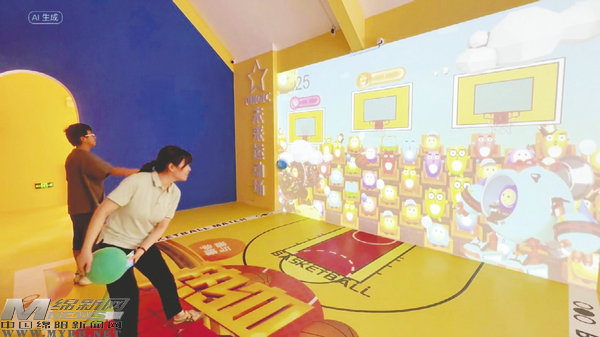 在“未來運動場”內(nèi),游客可以拿起籃球,親身體驗一場虛擬投籃比賽:站在發(fā)球區(qū),在規(guī)定時間內(nèi)向虛擬的球筐內(nèi)投球,“籃筐”會根據(jù)投籃的角度、速度顯示籃球的運動軌跡并計算得分。在“未來小畫家”體驗區(qū),游客可以拿起特制的畫筆大開腦洞,隨心所欲地在“海底世界”繪畫。神奇的是,體驗館的AI科技可以讓五彩斑斕的海底動物“游”起來,在這里,人人都可以當(dāng)一回“神筆馬良”……