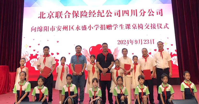 捐贈現(xiàn)場,北京聯(lián)合保險經(jīng)紀公司四川分公司向永盛小學定向捐贈升降課桌椅若干。雙方代表在全場師生見證下舉行了捐贈交接儀式。