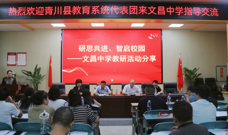 文昌中學(xué)黨委副書記、校長(zhǎng)李楊對(duì)青川縣教育代表團(tuán)的到來致以最誠摯的歡迎,以專題片的形式展現(xiàn)該校的辦學(xué)理念、教學(xué)設(shè)施、師資力量、教學(xué)特色等。他在以“堅(jiān)持立德樹人根本任務(wù),奮力提高人才培養(yǎng)質(zhì)量”為主題的分享交流中談到:“德者,本也”。立德樹人是教育的根本,文昌中學(xué)始終堅(jiān)持以人為本,以提高人才培養(yǎng)質(zhì)量為核心,關(guān)注每一位學(xué)生的全面發(fā)展,以期培養(yǎng)更多能夠適應(yīng)社會(huì)發(fā)展需求的高素質(zhì)人才。