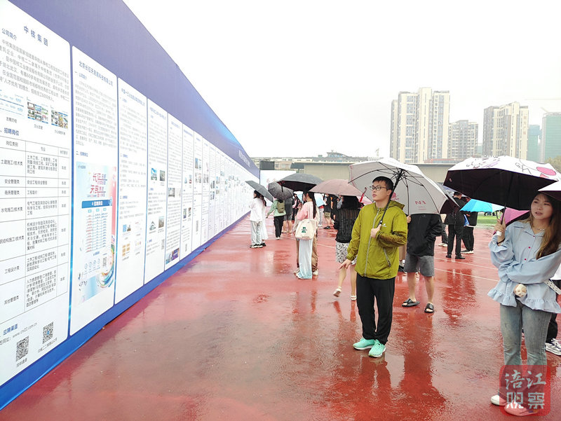上午9時(shí)30分許,啟動(dòng)儀式舉行,隨后招聘會(huì)正式開始。秋雨淅瀝中,各高校的學(xué)子撐著雨傘,穿過(guò)人群,來(lái)到心儀企業(yè)的展臺(tái)前,有序排隊(duì)遞簡(jiǎn)歷。