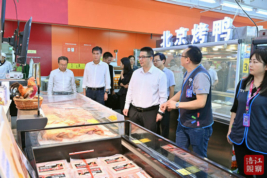“菜籃子”供應(yīng)保障事關(guān)千家萬戶。沃爾瑪超市公園店各種商品琳瑯滿目。李云邊走邊詳細(xì)詢問商品價(jià)格、物資供應(yīng)、食品安全等情況,檢查超市消防設(shè)施器材配備、安全通道設(shè)置,并現(xiàn)場(chǎng)抽查工作人員操作滅火器的熟練程度。他強(qiáng)調(diào),要進(jìn)一步暢通供應(yīng)渠道,豐富商品種類,保持價(jià)格穩(wěn)定,嚴(yán)把食品質(zhì)量安全關(guān)口,常態(tài)化開展消防滅火技能和逃生疏散演練,讓廣大群眾“安心吃”“放心購(gòu)”;要更大力度開展系列消費(fèi)促進(jìn)活動(dòng),不斷豐富消費(fèi)業(yè)態(tài)、提高商圈品質(zhì),更好滿足群眾多元消費(fèi)需求。