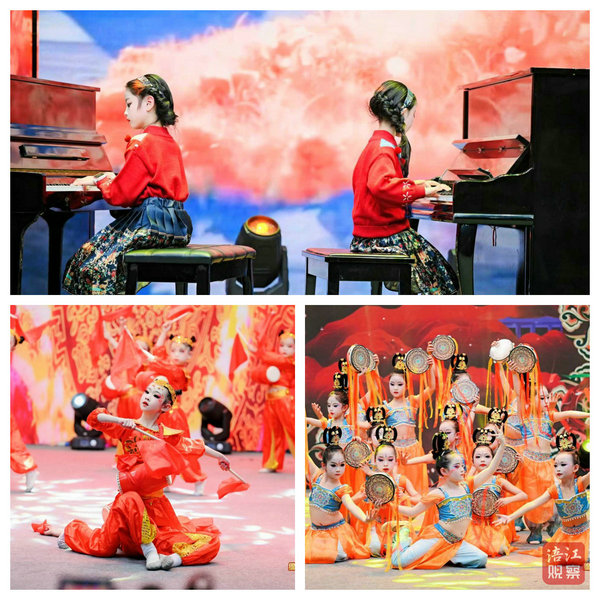小演員們更是才藝非凡,舞蹈、聲樂、器樂、朗誦等各類節(jié)目精彩紛呈。一群身著傳統(tǒng)服飾的孩子帶來的民族舞,動作優(yōu)美整齊,將民族文化展現(xiàn)得淋漓盡致。小演員袁夢潔表演結(jié)束后激動地說:“我為了這次表演準備了好久,希望能夠把最好的狀態(tài)呈現(xiàn)給觀眾。在舞臺上,我會盡情釋放自己,展現(xiàn)最閃耀的一面。”